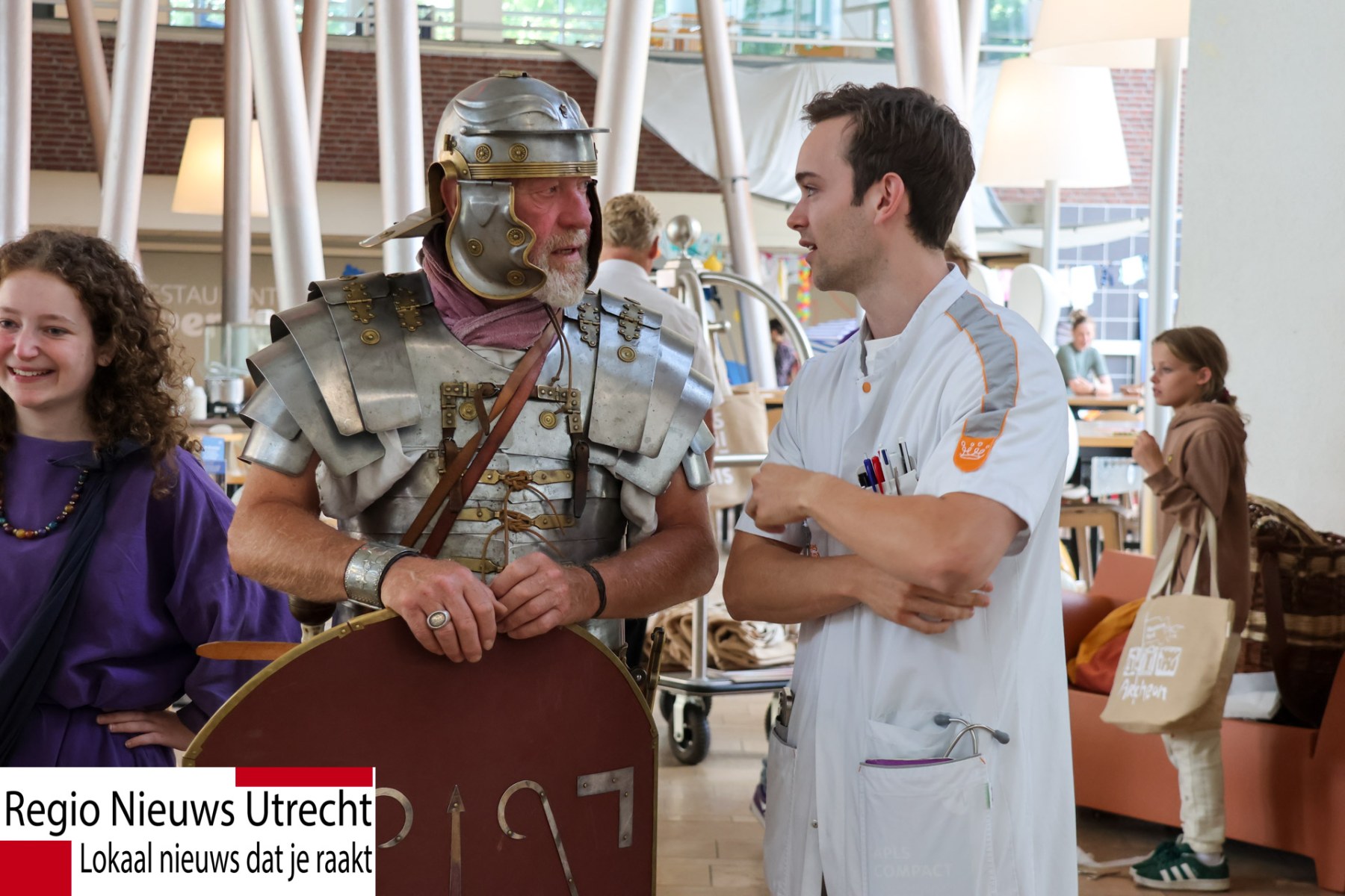 UTRECHT – Op 6 Augustus zijn in de ochtend bij het Wilhelmina kinderziekenhuis een aantal Romeinen uit park Archeon op bezoek gekomen.